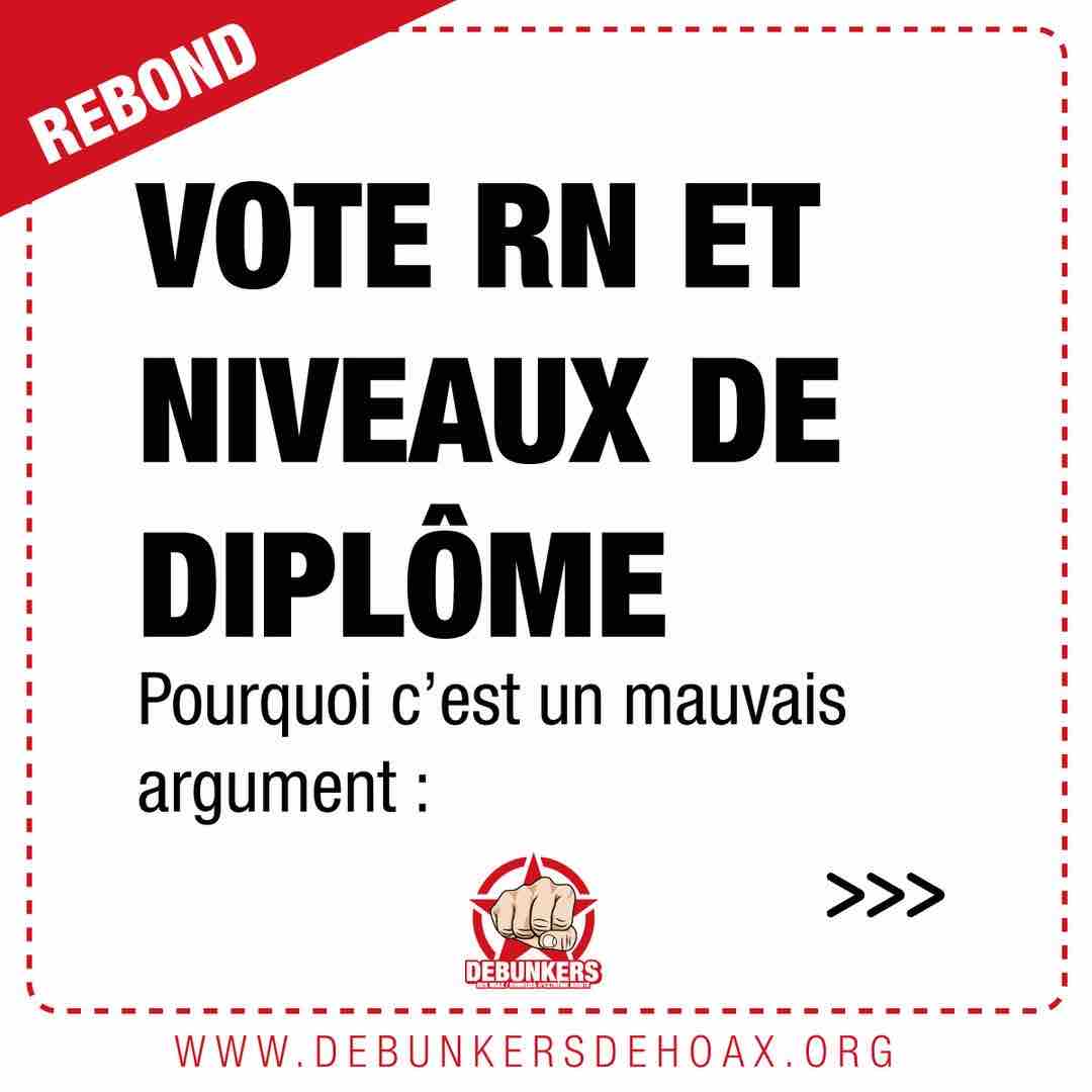 Le profil était scruté à la loupe et un critère éloquent a été rapidement mis en lumière, le niveau d'étude. Le résultat de l'enquête est implacable, le RN arrive premier et de loin chez les moins diplômés, 49% de ceux qui n'ont pas le bac ont choisi le RN.